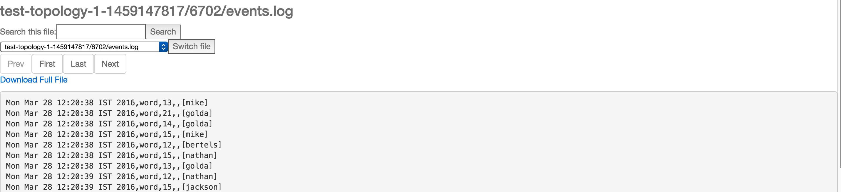 Storm "logviewer" 应该运行查看已记录的元组。如果没有运行,则可以从Storm安装目录运行“bin/storm logviewer” 命令启动日志查看器。要查看元组,请从Storm UI中访问特定的spout(喷口)或bolt(螺栓)组件页面,然后单击组件摘要下的“事件”链接(如上图2所示)。