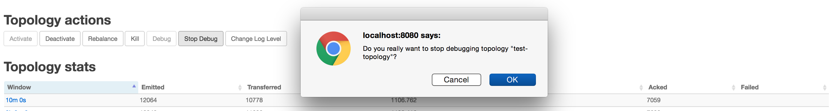 可以通过在Storm UI中的拓扑或组件操作下单击“停止调试”,在特定组件或拓扑级别上禁用事件日志。